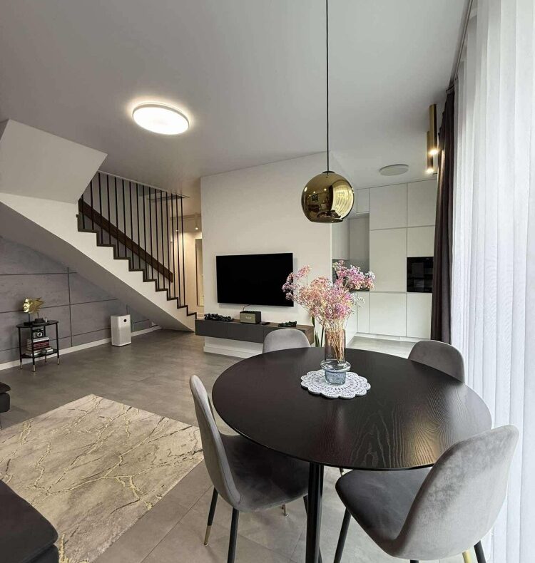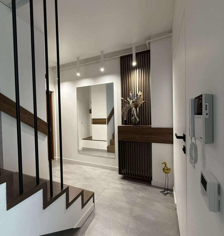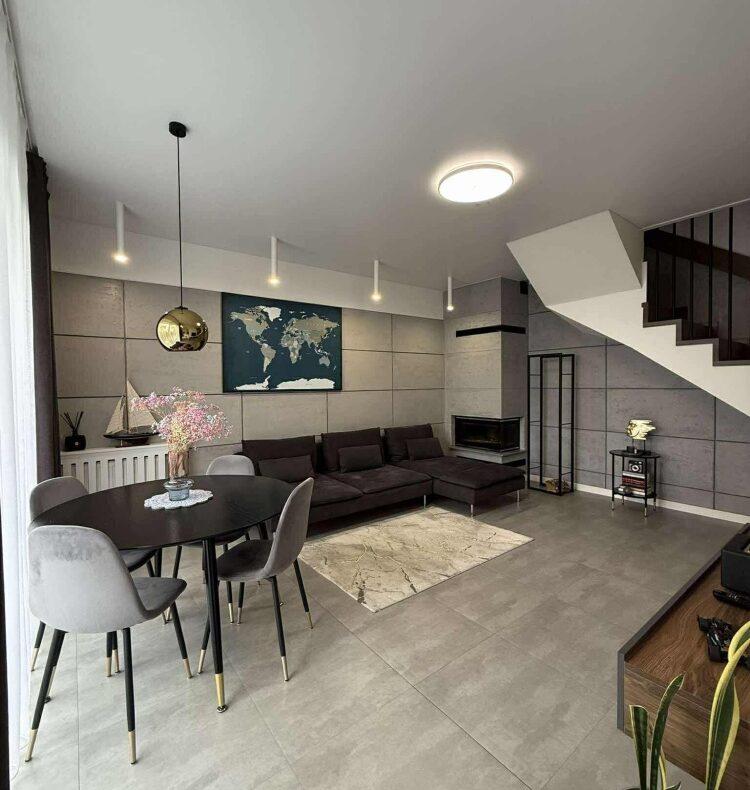 Segment 100m2 na zielonej, rezydencjalnej Białołęce z czego 70 m2 urządzone i dopracowane szczegółowo w każdym calu. Dom wykończony z wysokiej jakość materiałów. Zabudowa w korytarzu, łazienkach, kuchni i garderobie. Sypialnia wykonana na zamówienie z piękną ścianą i łóżkiem.