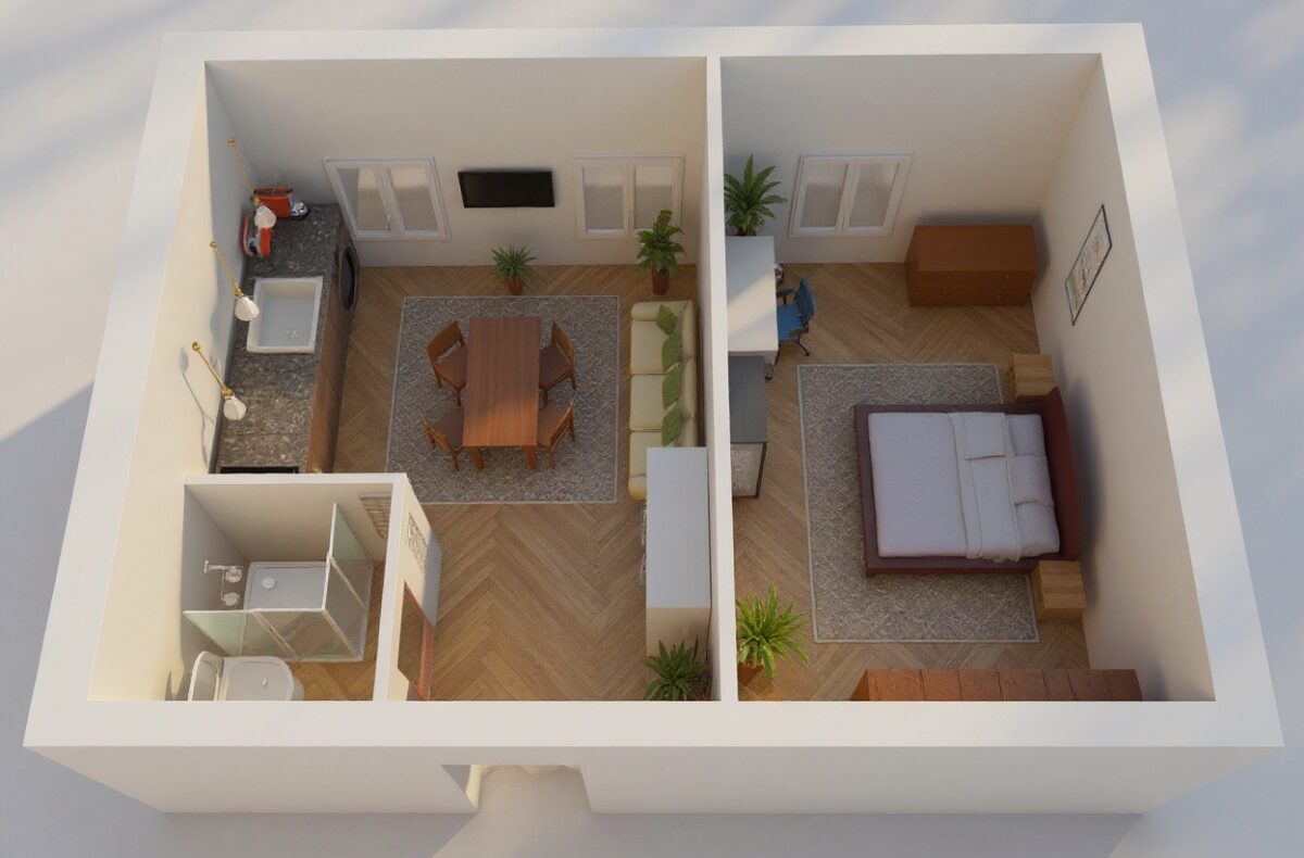 – Możliwość podziału na dwa niezależne mieszkania – apartament posiada dwa oddzielne wejścia z klatki schodowej, co otwiera opcję wydzielenia dwóch lokali.