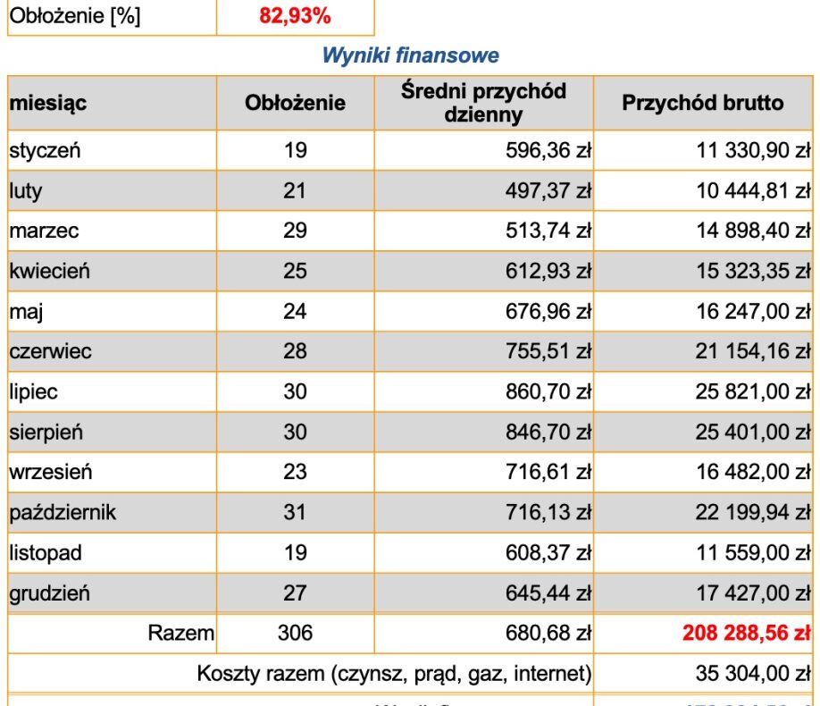 – Zysk brutto ok. 173.000,- zł (po odjęciu kosztów stałych)