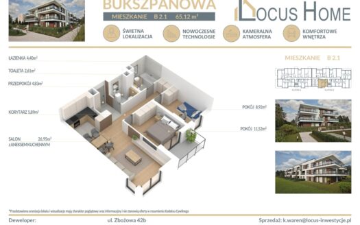 Dla rodziny 2+1 lub 2+2 – dwie sypialnie, a przestrzeń dzienna jest duża i ustawna.