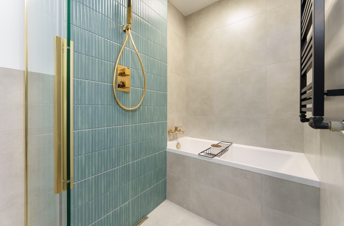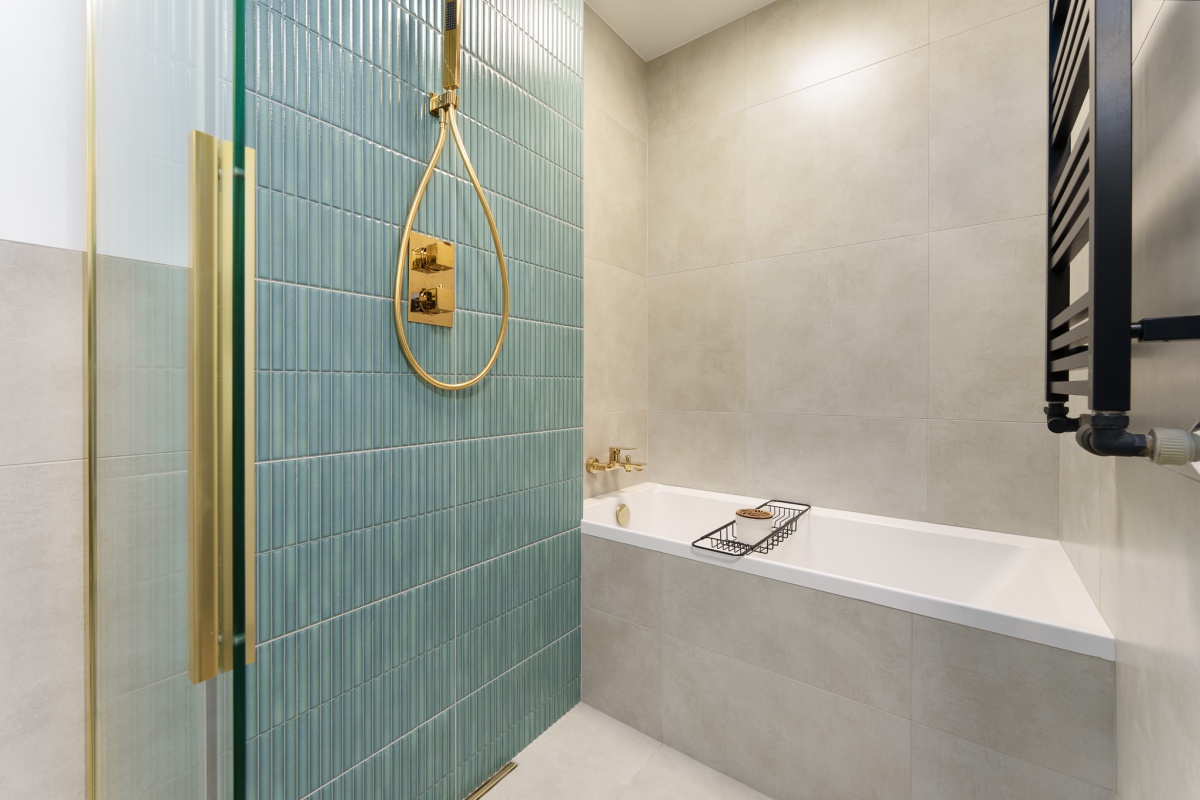 dużej łazienki / pokoju kąpielowego z wanną i prysznicem walk-in,