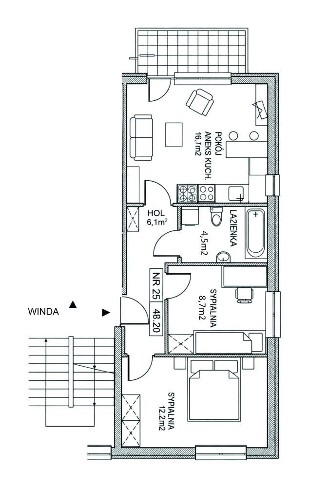 Okna wychodzą na trzy strony świata, dzięki czemu mieszkanie jest doskonale doświetlone. Zabudowany balkon z rozsuwanym przeszkleniem pozwala korzystać z dodatkowej przestrzeni niezależnie od pogody, idealne miejsce na poranną kawę, miniogród czy bezpieczną przestrzeń dla dzieci i pupili. Mieszkanie posiada klimatyzację.
