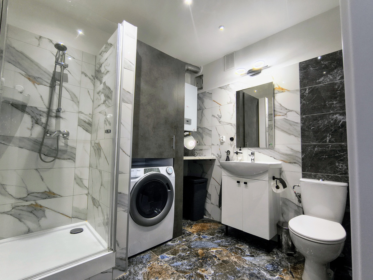 – Ogrzewanie: Własny, nowoczesny dwufunkcyjny kocioł gazowy kondensacyjny zapewnia niskie koszty ogrzewania CO i wody