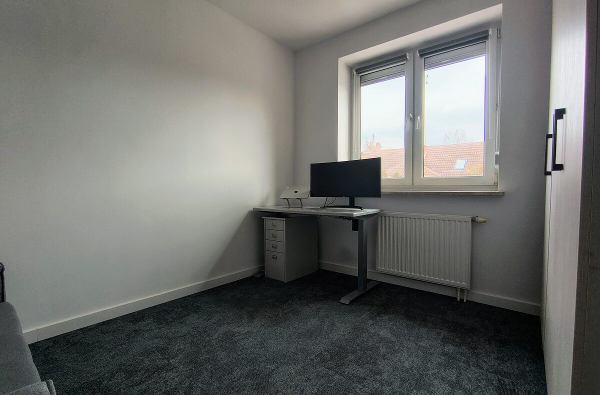 – Sypialnia II / Gabinet (9,5 m²): Cicha, od wschodu – idealna do pracy lub dla dziecka.