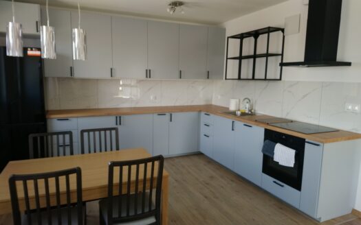 To otwarta przestrzeń w pełni wyposażona we wszystkie urządzenia niezbędne do komfortowego mieszkania. Kuchnia jest połączona z częścią jadalną i dalej z salonem. Meble, które znajdują się w kuchni, zostały przygotowane przez stolarza. Bardzo duża ilość szafek i szuflad. Każda dostępna przestrzeń została wykorzystana do maksimum.