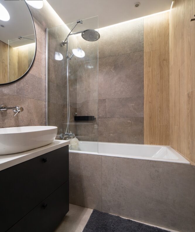 Duży kinkiet nad lustrem jako dodatkowe oświetlenie