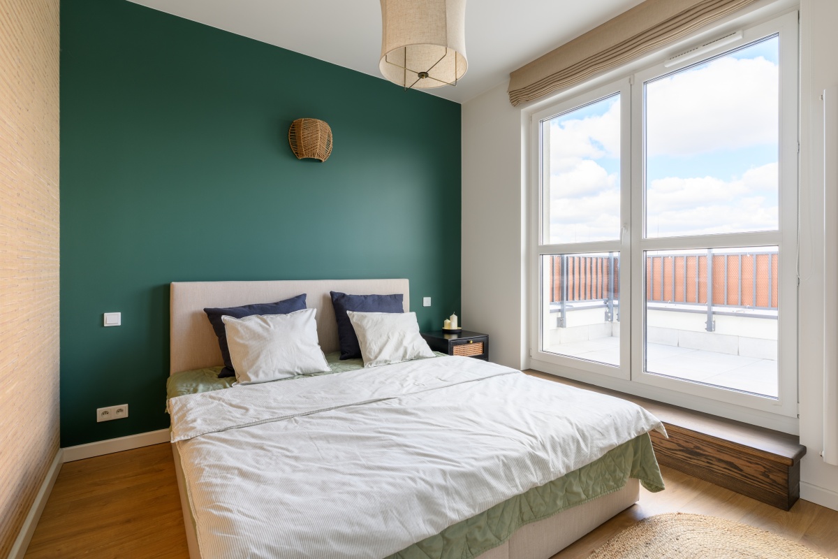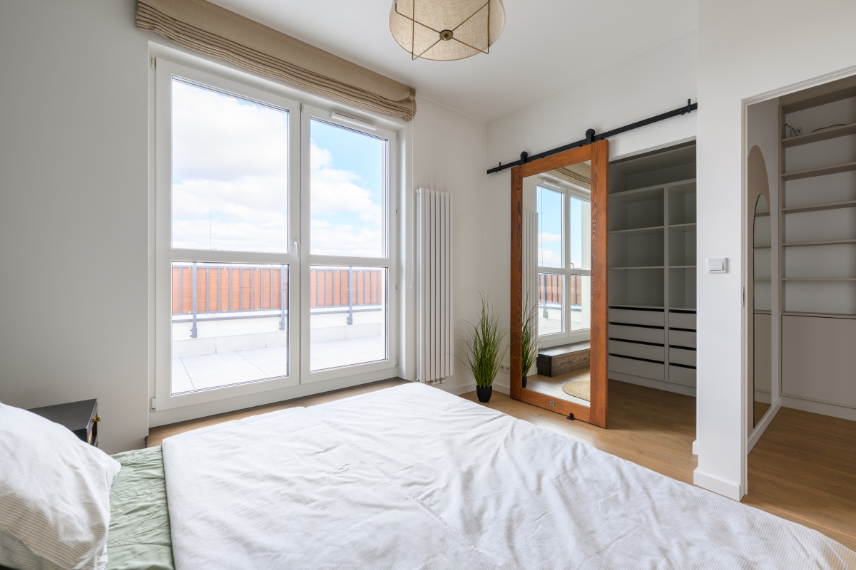 Sypialnia Master: Z wydzieloną garderobą i prywatnym wyjściem na drugi taras.