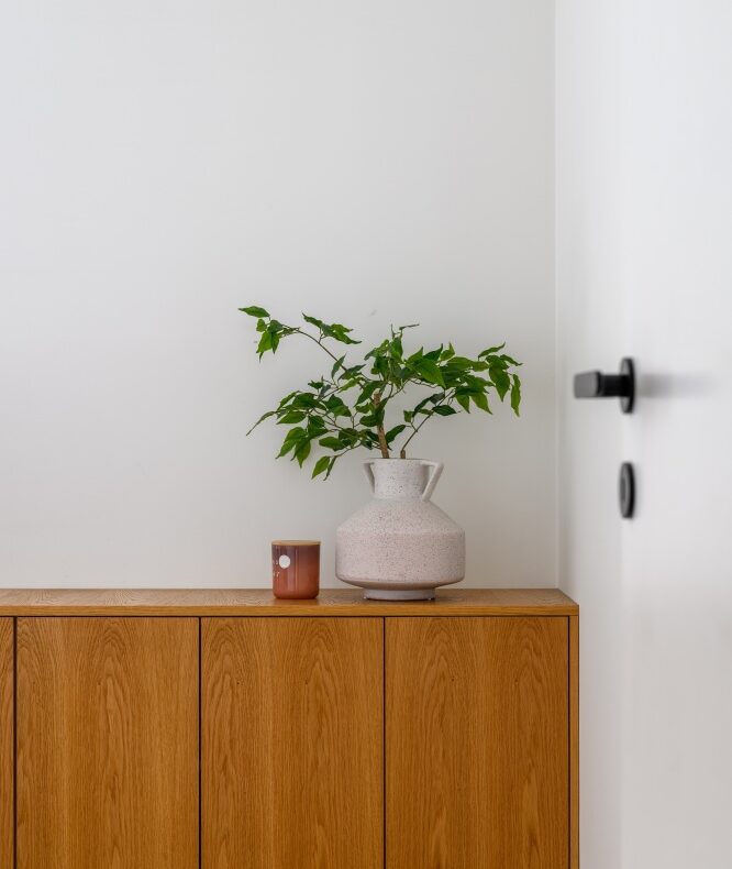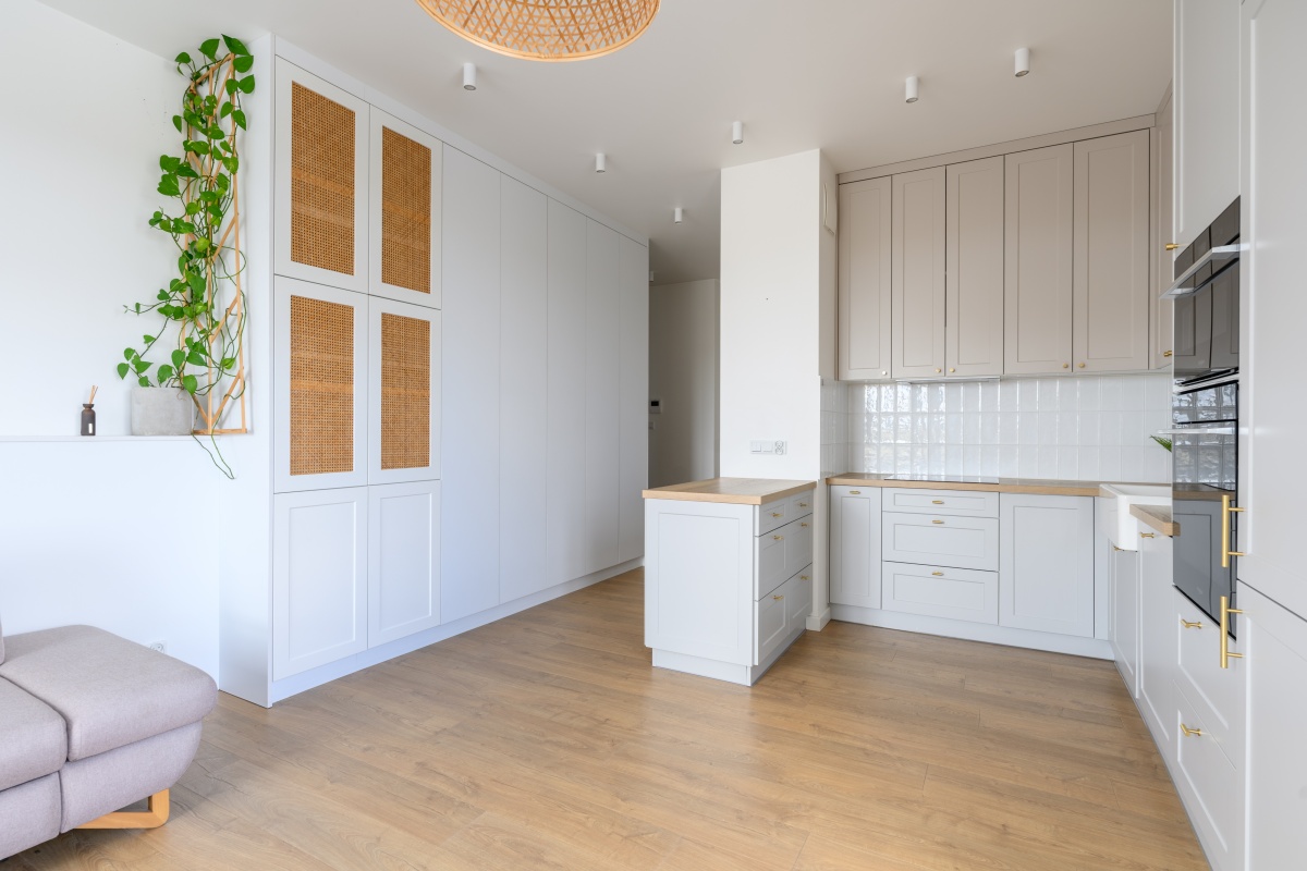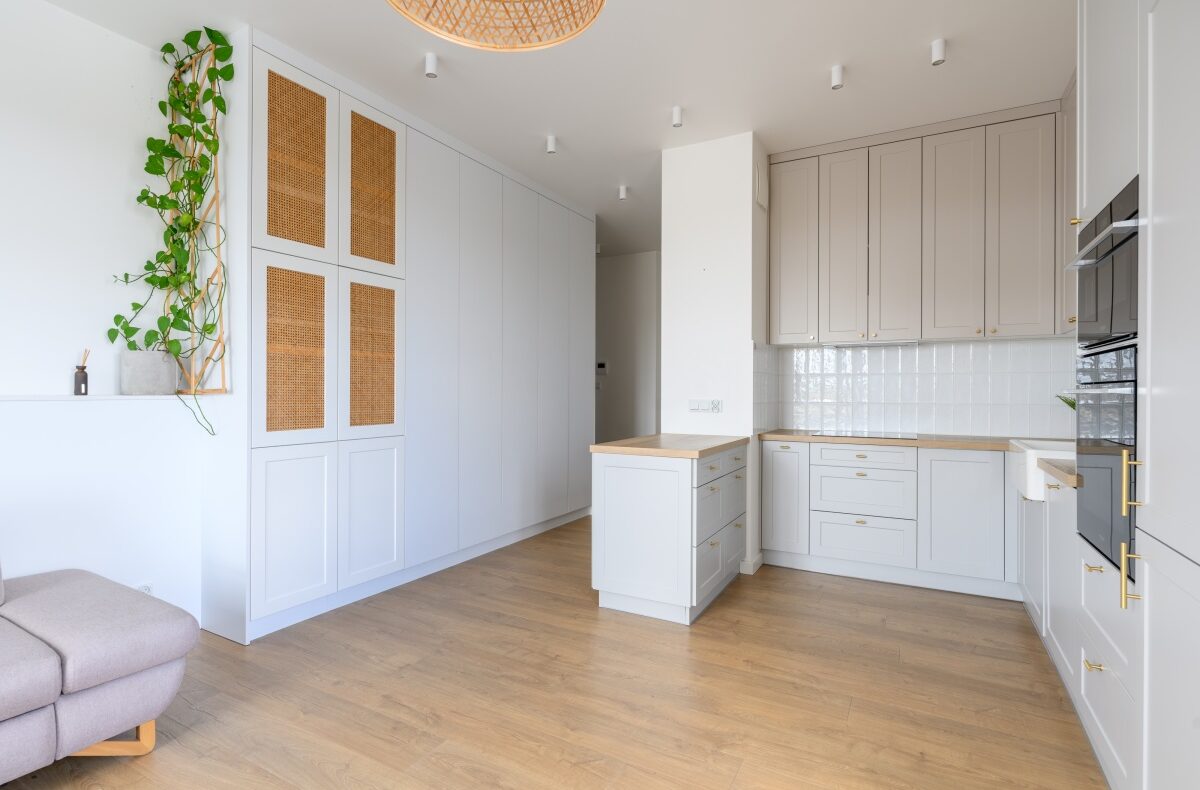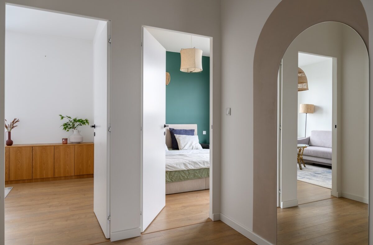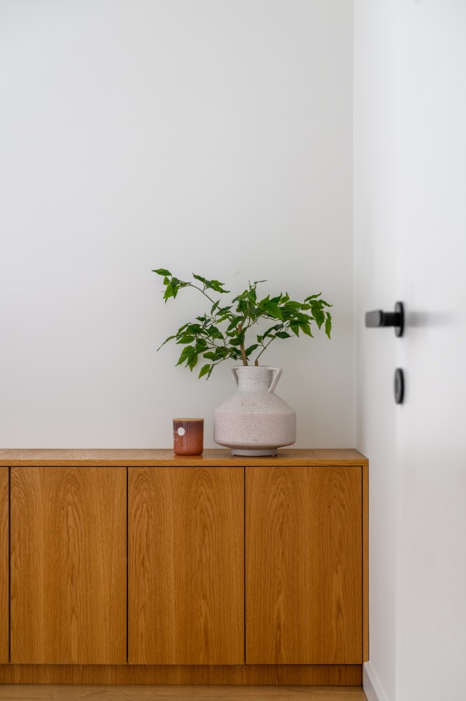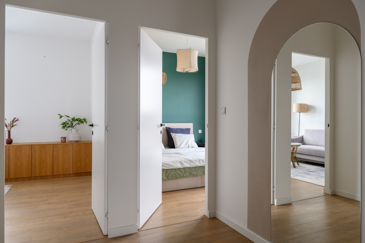 Prezentowane mieszkanie to przestrzeń wykończona "dla siebie" – z szacunkiem do naturalnych surowców i dbałością o detale, które budują poczucie dyskretnego luksusu.
