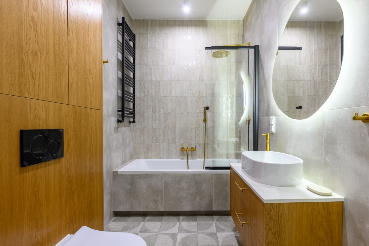 Wykończenie bez kompromisów: Podłogi o najwyższej klasie odporności, system Smart Home, armatura Omnires oraz sprzęt Whirlpool i LG.