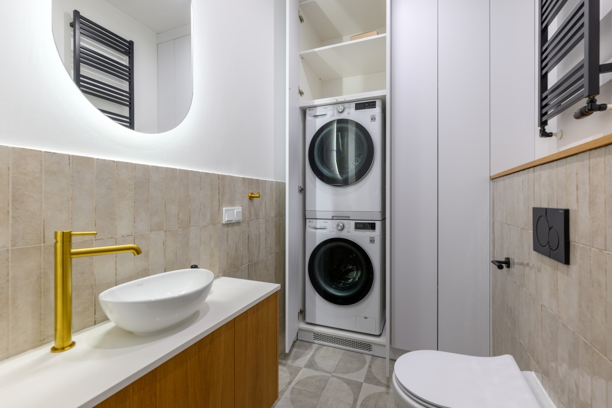 Łazienka i Toaleta: Łazienka z wanną oraz osobne WC z ukrytą, funkcjonalną pralnią.
