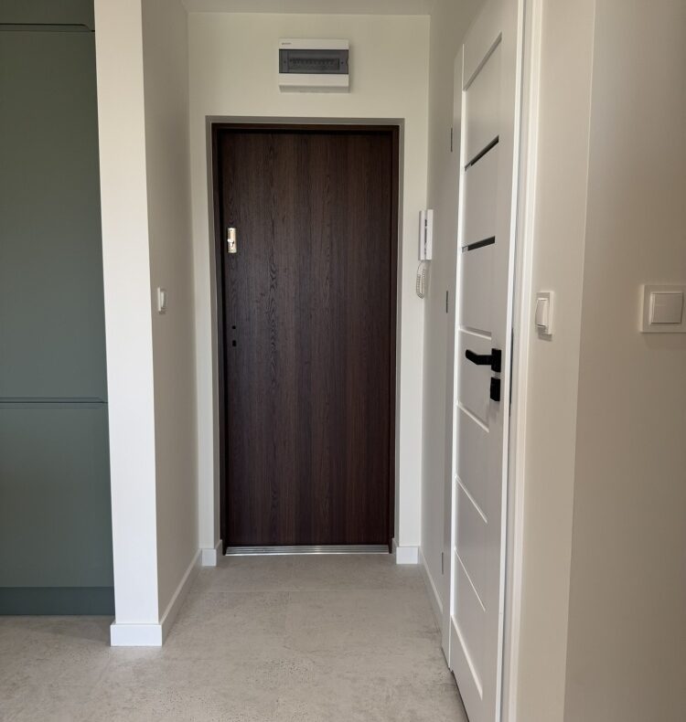 Układ: przestronny salon z aneksem kuchennym oraz balkonem, sypialnia, oddzielna, łazienka z kabiną prysznicową oraz przedpokój z szafą w zabudowie. Do mieszkania przynależy piwnica.