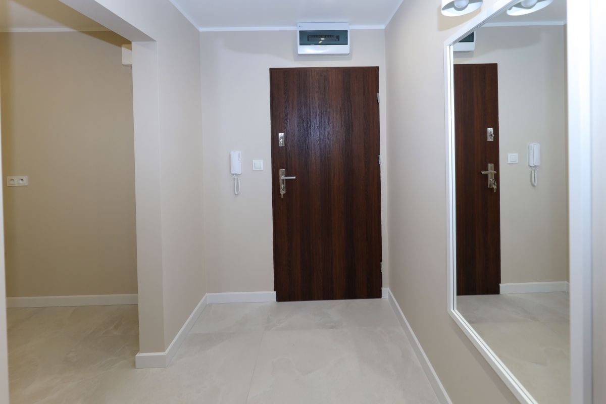 Mieszkanie świeżo po remoncie, w jednej z najlepiej skomunikowanych lokalizacji w Olsztynie ul Murzynowskiego 3 , blisko centrum. Dwa obszerne, ustawne, samodzielne pokoje, oddzielna kuchnia, łazienka usytułowane na parterze w bloku 4 piętrowym. Powierzchnia 48,2 m , wyremontowana klatka schodowa. Wymieniono wszystkie instalacje, ściany szpachlowane, malowane, nowa glazura, terakota, panele, nowe drzwi zewnętrzne i wewnętrzne, nowoczesne oświetlenie, wstawione nowe okna 3 szybowe i nowe grzejniki we wszystkich pomieszczeniach. Po remoncie mieszkania nikt w nim nie mieszkał – czyste pachnące nowością, zamontowane sprzęty są na gwarancji. Przy wyborze elementów wykończeniowych dbałość o detale, spójna, neutralna kolorystyka sprawiają, że mieszkanie prezentuje się elegancko i komfortowo. Mieszkanie słoneczne, ciepłe, dwustronne z balkonem. Czynsz 542 zł z funduszem remontowym. Pełna infrastruktura, sklepy, przystanki MPK, tramwaje, dużo zieleni, place zabaw, zadbane osiedle. Kuchnia pod zabudowę oraz przestronna szafa w korytarzu robiona przez stolarza .Zapraszam do oglądania, na żywo prezentuje się ładniej niż na zdjęciach 🙂 Jestem dostępna 7 dni w tygodniu w godz 8-22. Mieszkanie sprzedaję bezpośrednio chyba, że konkretny klient życzy sobie przez biuro nieruchomości. Zapraszam