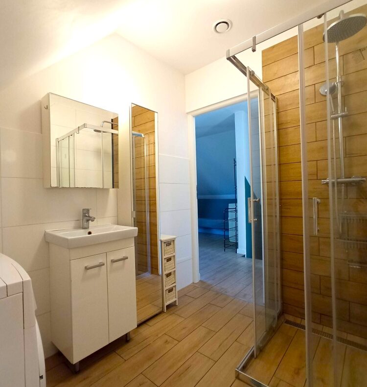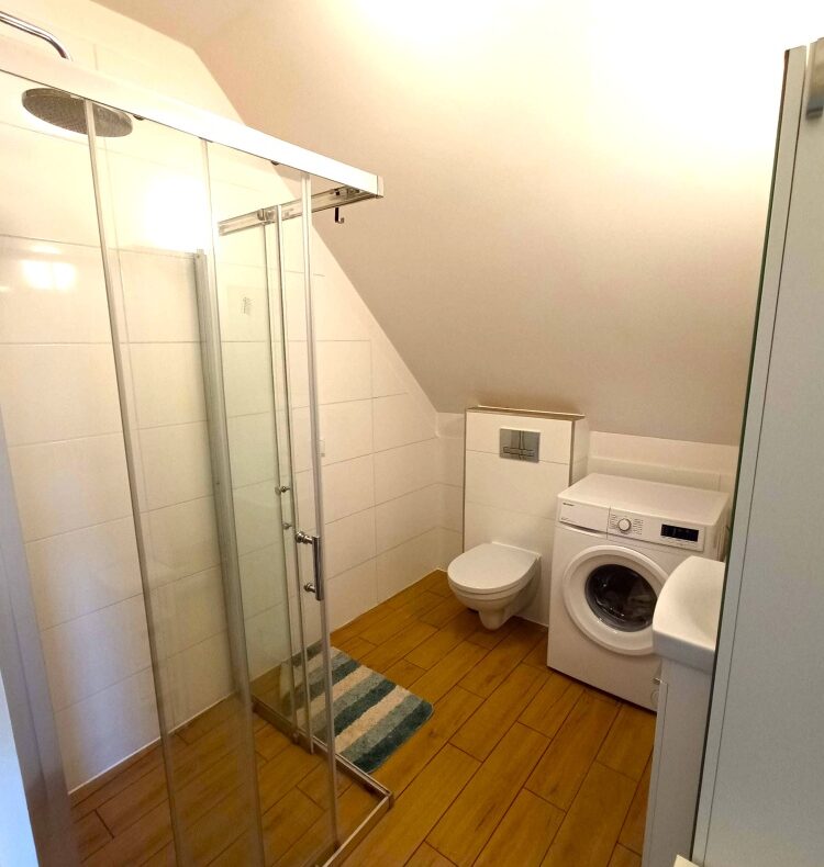 Na górze łazienka i 3 pokoje – same klitki. Już naprawdę lepsza ta kawalerka w Warszawie.