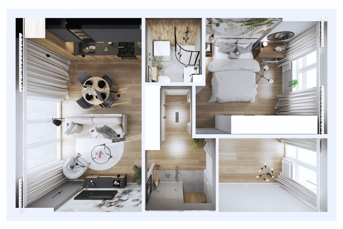 – MIESZKANIE O POWIERZCHNI 52m2 składa się z:
