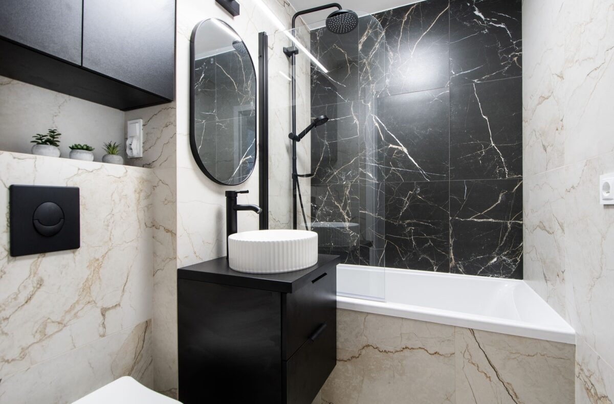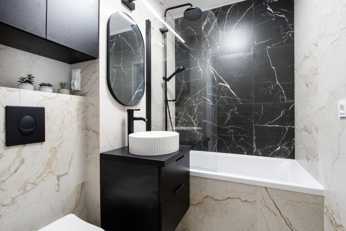– pełny remont łazienki z WC podwieszanym, wanną z funkcją prysznica