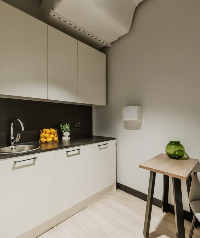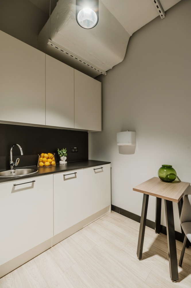Rozkład: Otwarta przestrzeń typu open space oraz wydzielone gabinety, komfortowa sala konferencyjna, wyposażona kuchnia i łazienka.