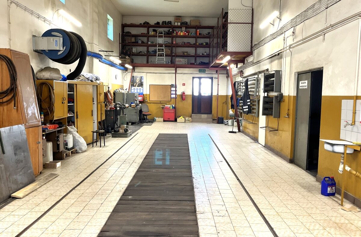 Wysoka hala warsztatowa. Kanał, instalacja odprowadzania spalin.