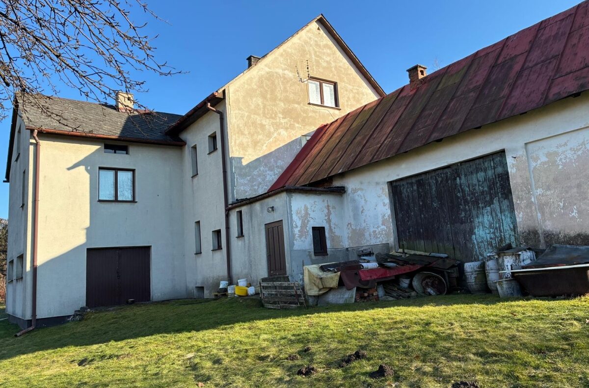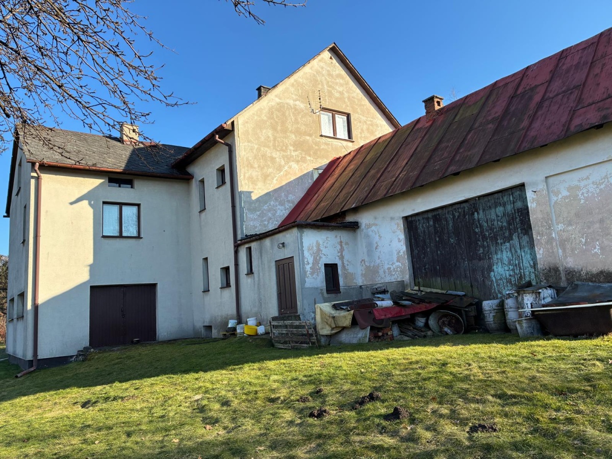 Budynek murowany pod dachem z konstrukcji drewninej pokryty eternitem płaskim.Do budynku mieszkalnego przybudowany budynek gospodarczy murowany kryty blachą