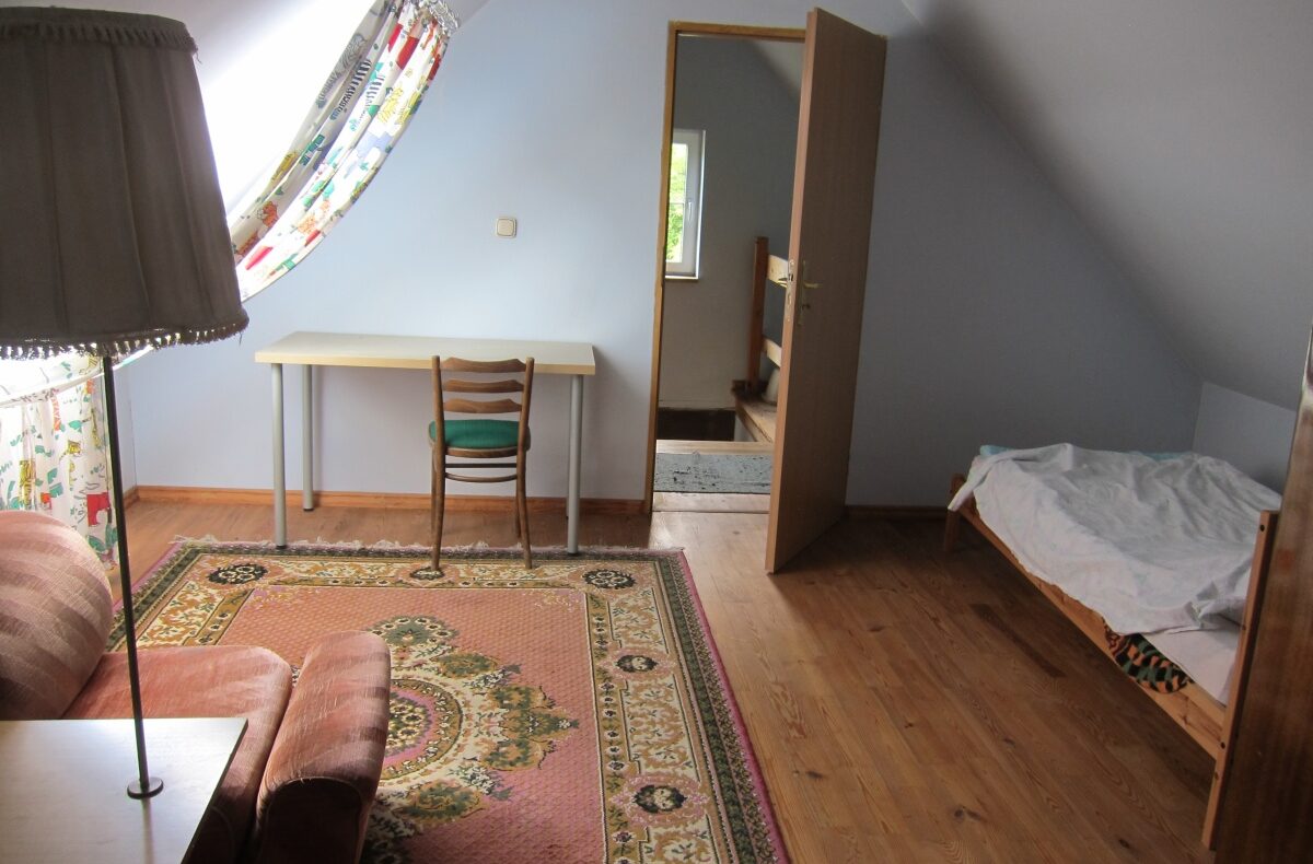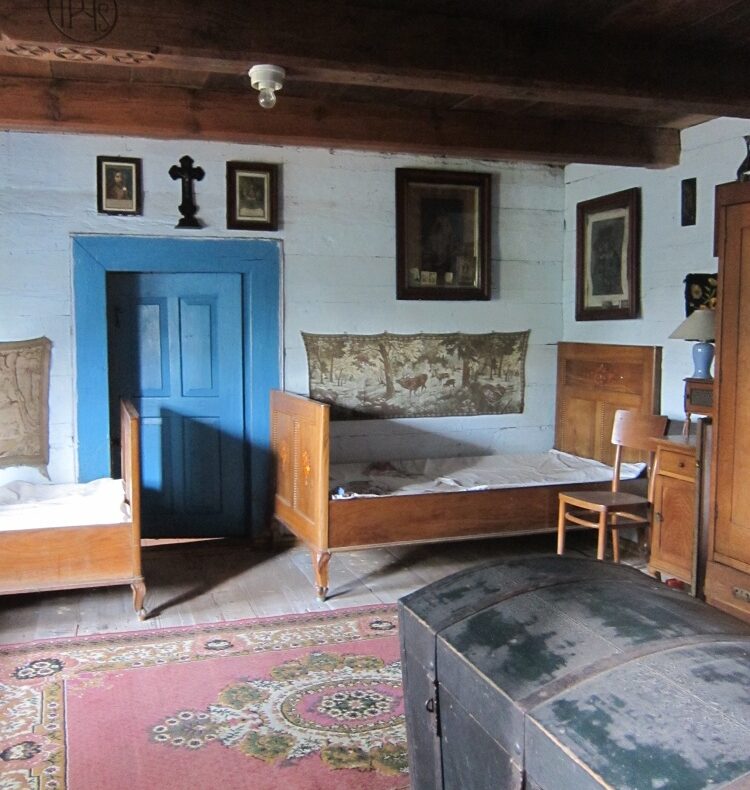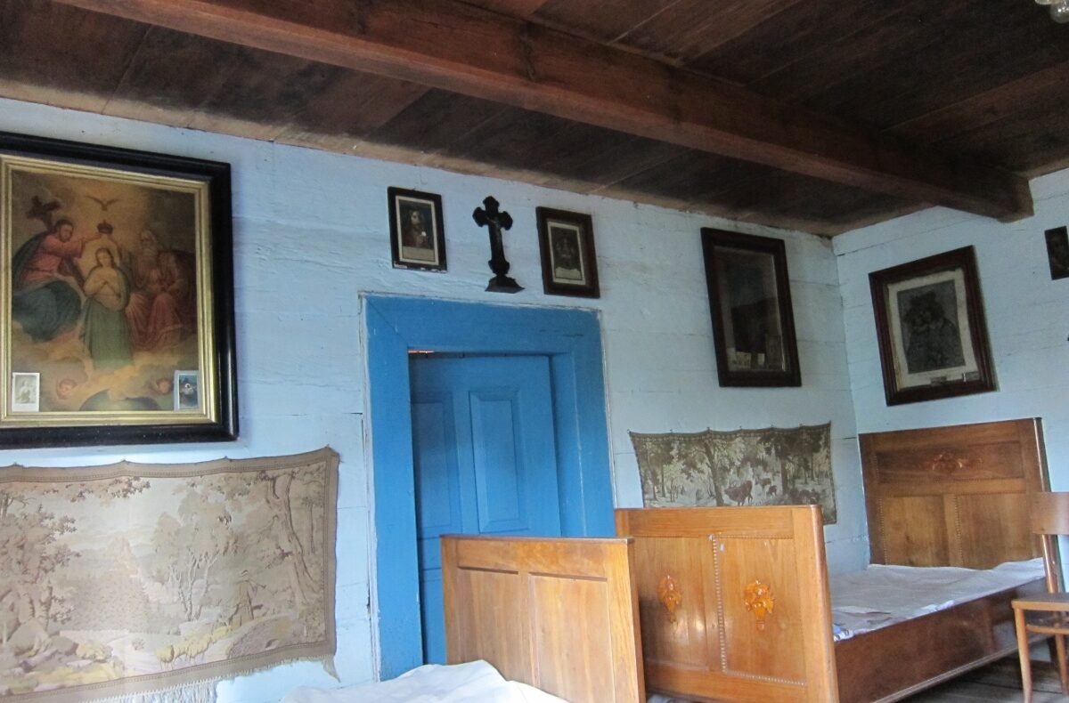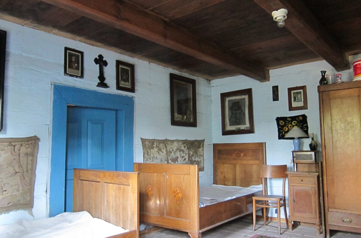 Parter orginalnie zachowana chlopska izba i kuchnia, rozbudowane piętro w poddaszu oraz łazienka w dawnej komorze .
