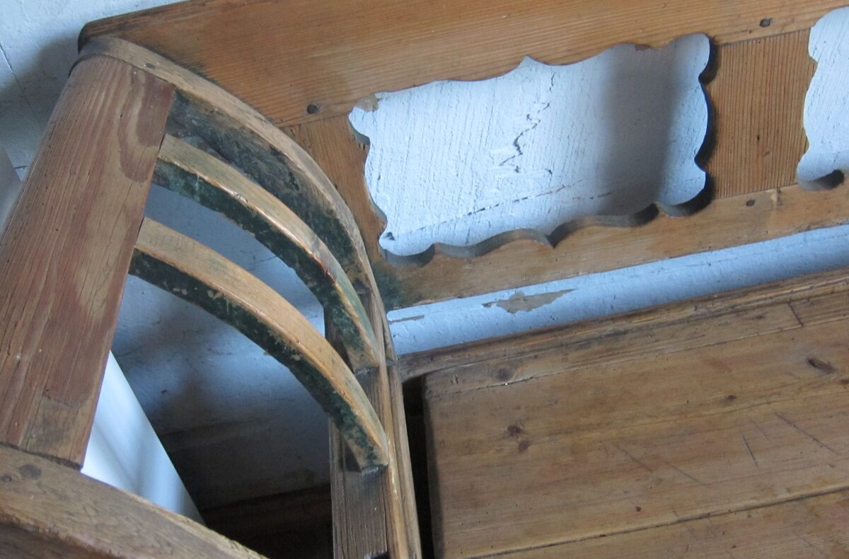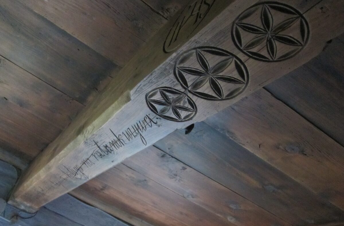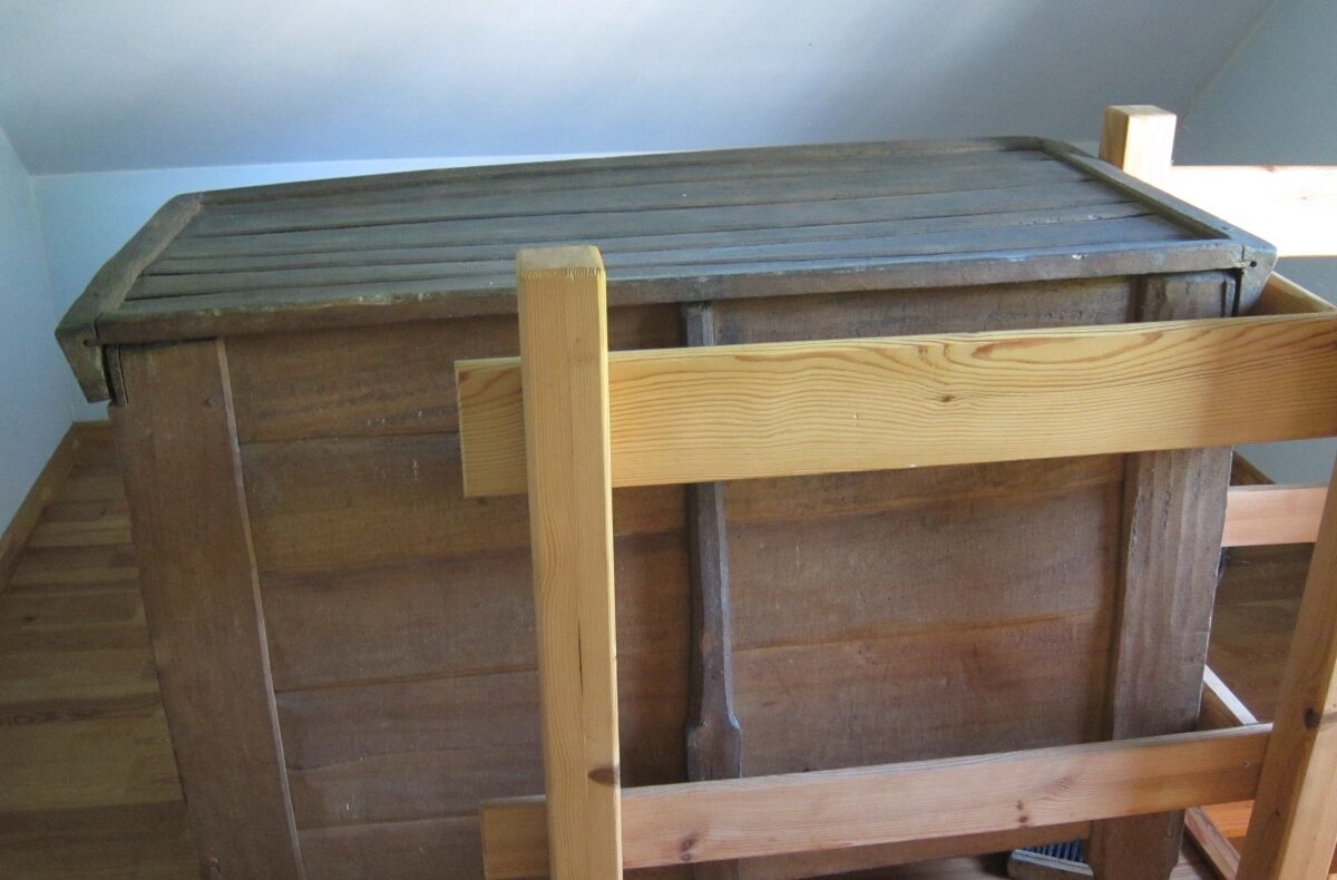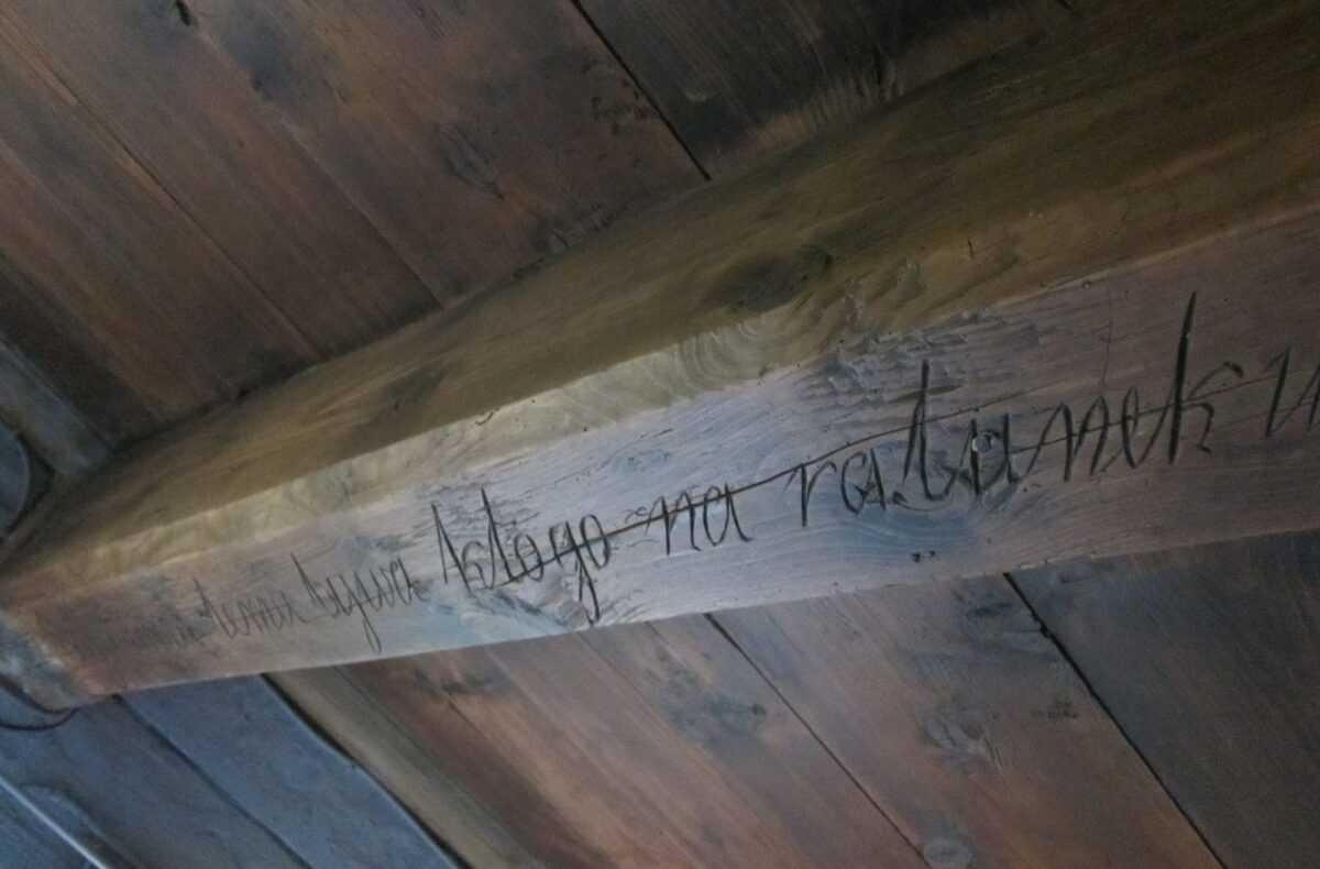 Parter domu oryginalne belki oraz powała z 1879 roku , na podłogach położono na nowo oryginalne stare deski.