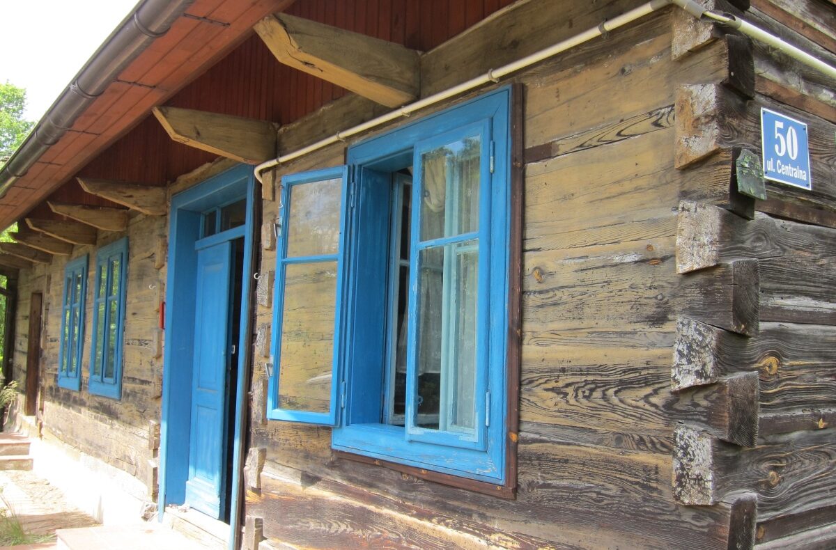 Piękny dom z bali drewnianych, powierzchnia około 120 m², usytuowany na działce o pow. 9 ar zlokalizowany w samym centrum miejscowości.
