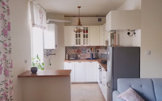 For rent a very quiet, cozy and in excellent location flat with an area of 51m2 in Śródmieście (Muranów, str. Karmelicka). The flat consists of two bedrooms with a separate entrance from the corridor (ca. 16.50m2 and 11m2), bathroom and kitchen. The flat has additionally an underground cell (ca. 4m2). Access to many bus and tram stops as well as to Metro Ratusz – Arsenal. Numerous shops, service and gastronomic points, drugstores, as well as parks. A flat is freshly painted and furnished. There is a possibility to change the furnishings.