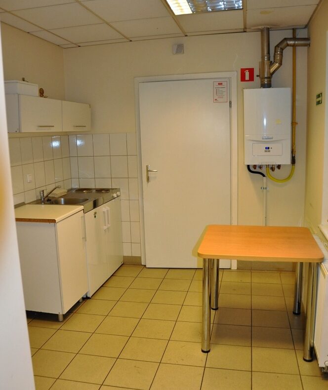 Wyposażenie: zestaw kuchenny, lodówko-zamrażarka, okna szyby bezpieczne, możliwość wynajęcia razem z obecnym wyposażeniem.