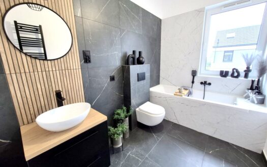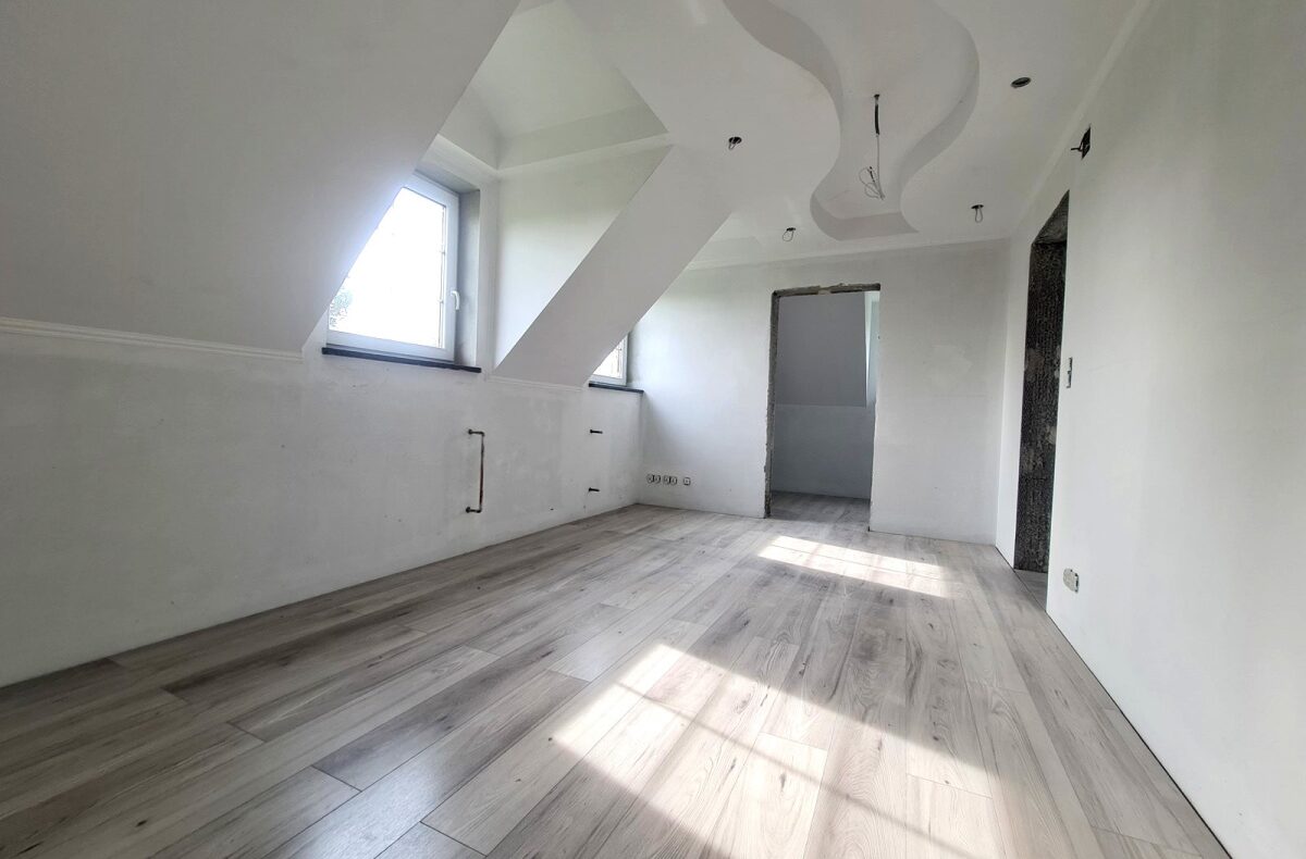 Dom jest funkcjonalny, a rozpoczęte prace wykończeniowe pomieszczeń wykonane zostały w bardzo dobrym guście, co daje nowemu nabywcy możliwość kontynuacji urządzania domu w nowoczesnym stylu.