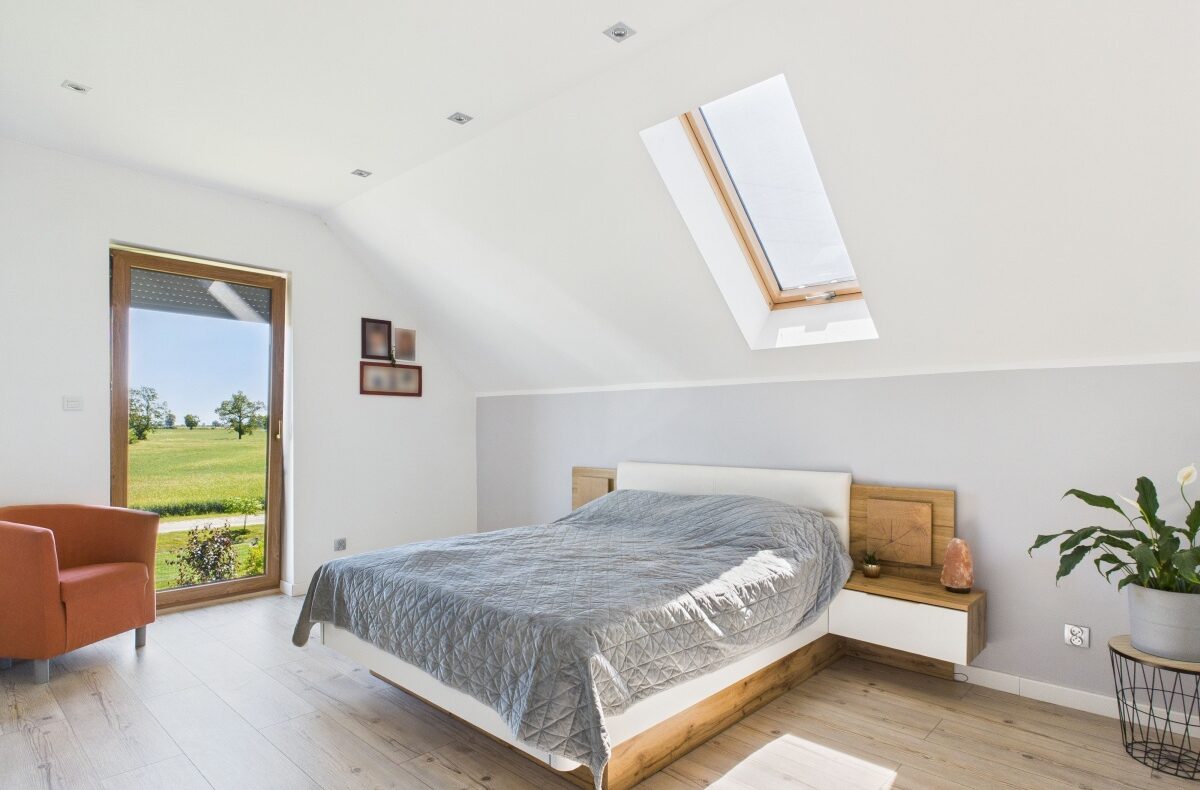 • Okna 3-szybowe z roletami zewnętrznymi sterowanymi jednym pilotem – pełna prywatność i wygoda