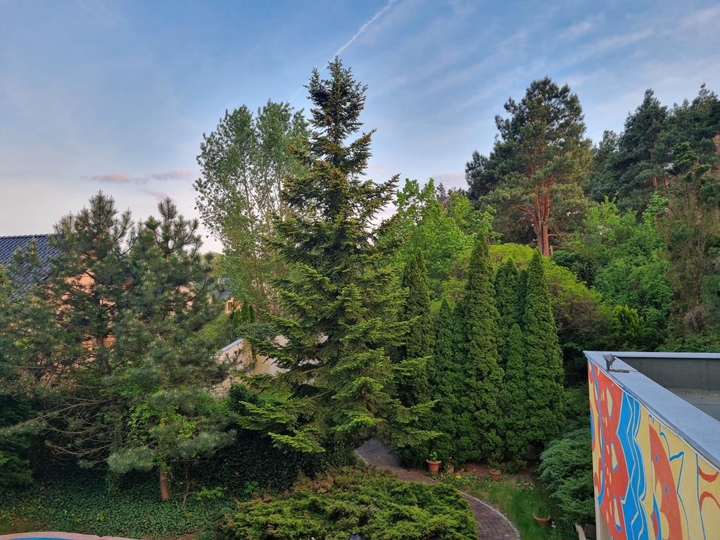 Duża działka (1895 m2) z basenem i dużą ilością pięknych zielonych nasadzeń.