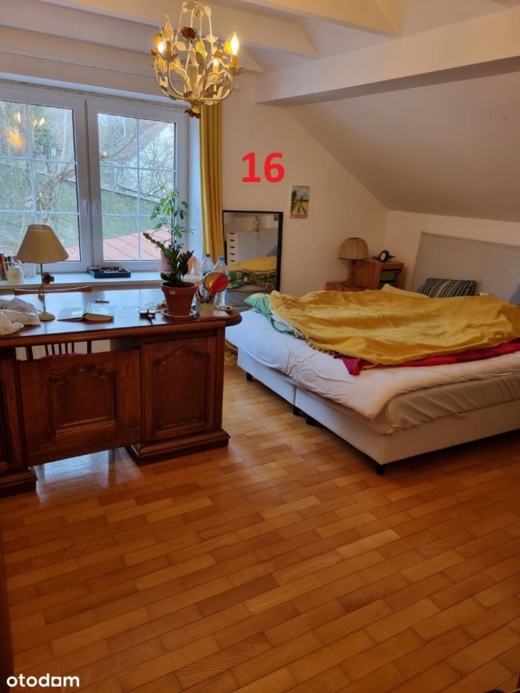 8. Opis techniczny – Materiał budynku: cegła – Dach dwuspadowy, z dachówki ceramicznej. Ogrzewanie: gazowe – Media: prąd, woda, gaz, kanalizacja – Okna plastikowe trzyszybowe wymienione w 2022r. w głównej części; dwa garaże, piwnica