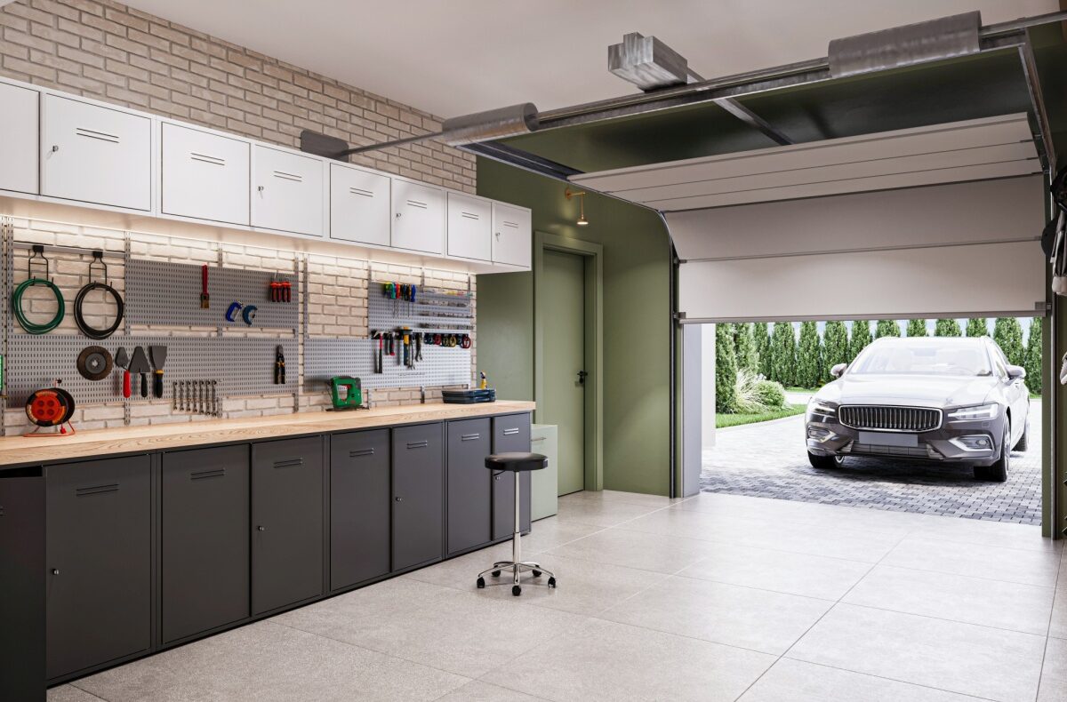 garaż w bryle budynku i dodatkowe miejsce postojowe na podjeździe,