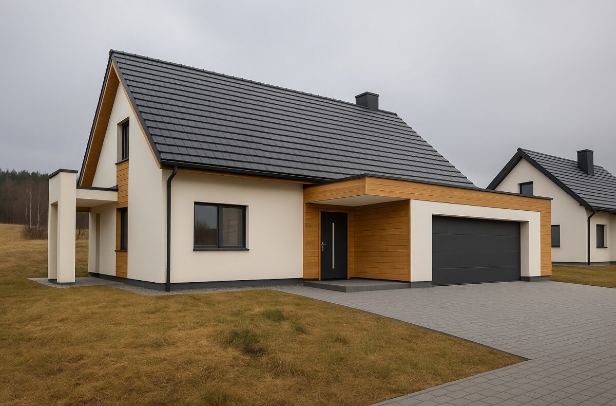 Ściany domu zostały docieplone styropianem Genderka o grubości 20 cm.