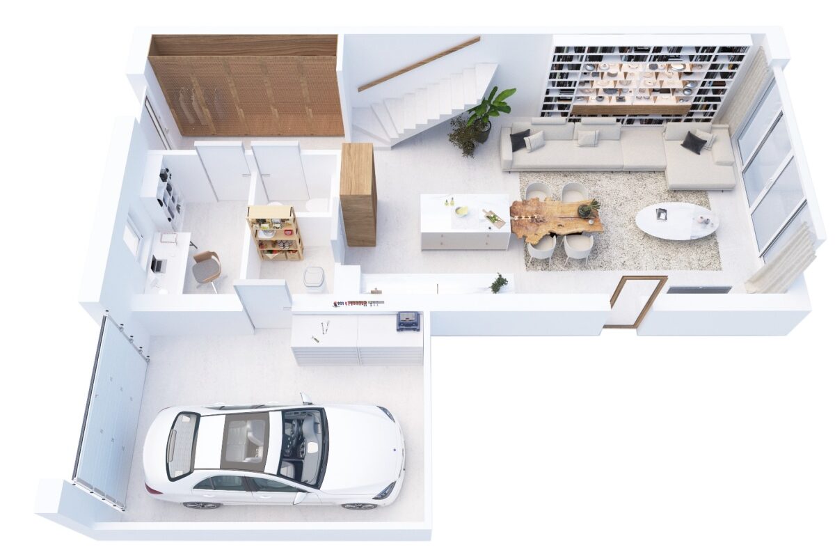 – 2 łazienki (4 i 4,5 m²) oraz WC na parterze, osobna pralnia oraz garderoba
