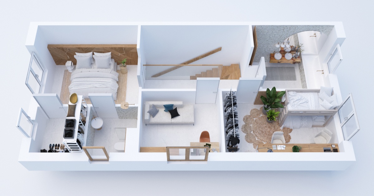 Dodatkowo zyskują Państwo poddasze nieużytkowe do własnej aranżacji z dodatkową przestrzenią (nie wliczoną w wyżej podaną).