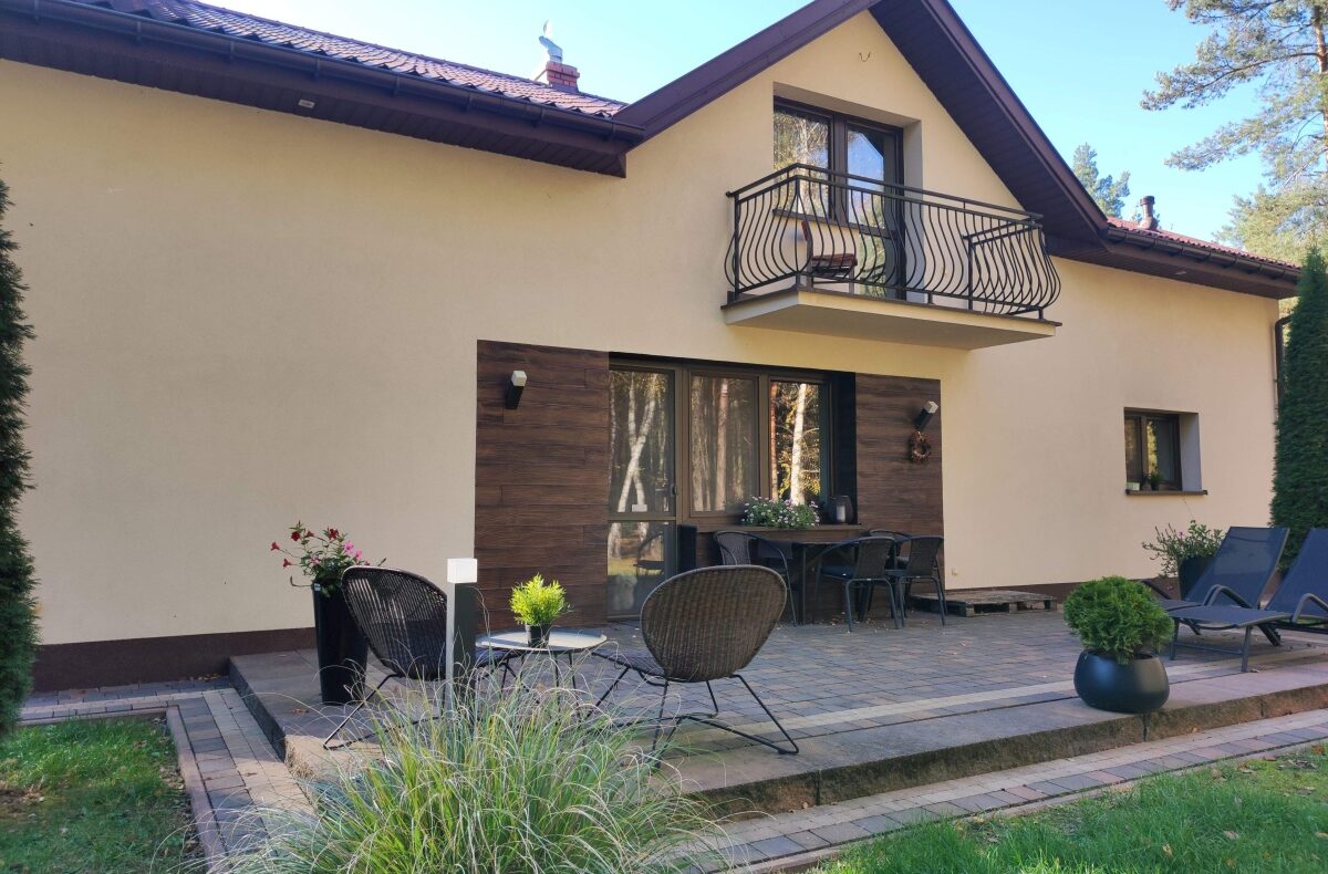 To idealne miejsce dla osób ceniących ciszę, prywatność i życie w rytmie natury. Z dala od zgiełku miasta, cichy, pełen światła i spokoju. Ranki budzą tu śpiewem ptaków, a wieczory otulone są szumem drzew i zapachem. Tu kawa na tarasie smakuje lepiej, odpręża widokiem na las, a każda pora roku ma swoje niepowtarzalne barwy i dźwięki.