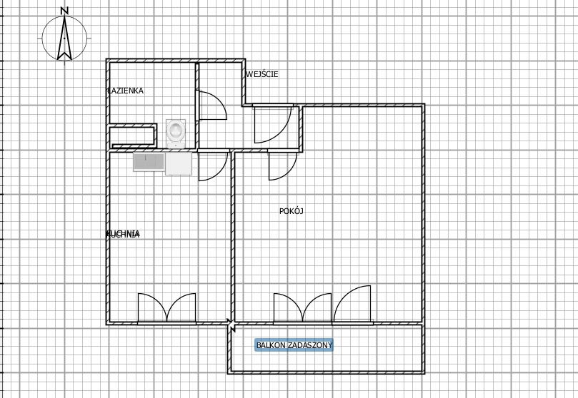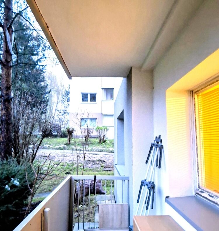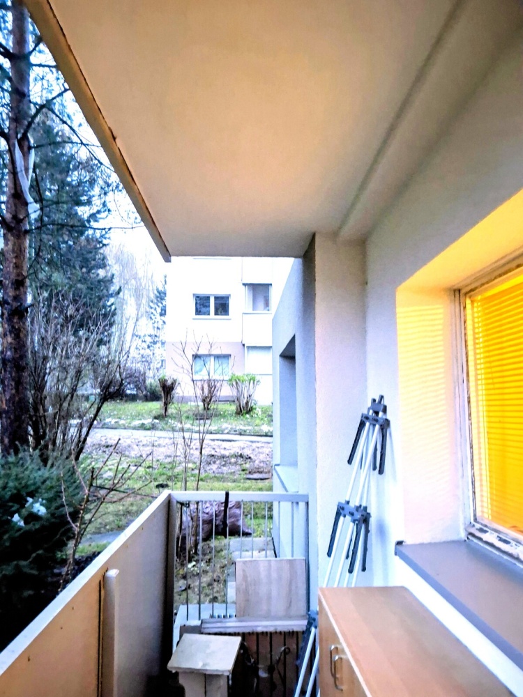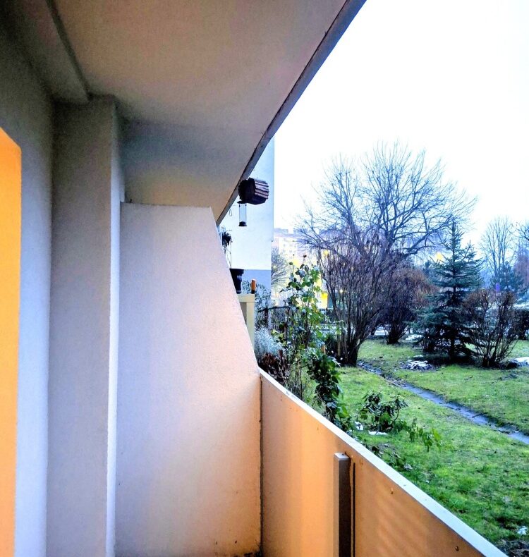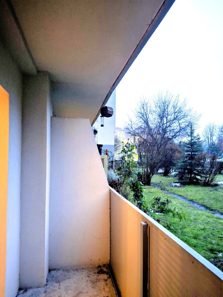 Mieszkanie ma pow. 37 m2 na co składa się duży pokój ( ok. 22 m2 ) z wnęką i wyjściem na całkiem duży balkon z zadaszeniem i odgrodzony od sąsiedniego balkonu.