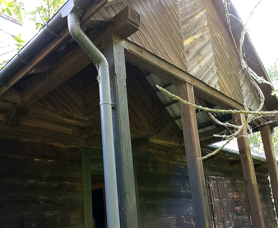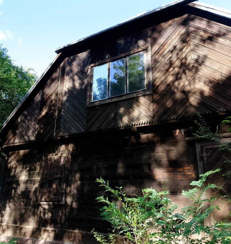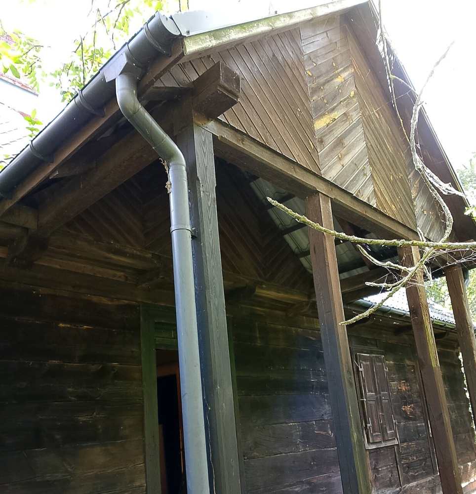 Dom w konstrukcji drewnianej , z trzema małymi podpiwniczeniami i wymienionym za zgodą konserwatora dachem w 2000 roku .