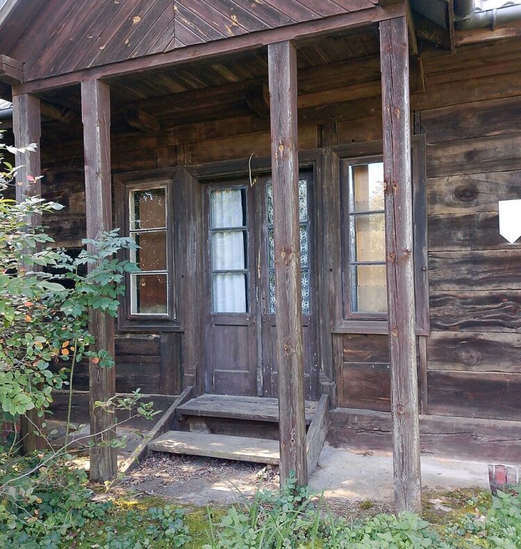 Wiejski dom w stylu dworku szlacheckiego wybudowany w 1890 roku .