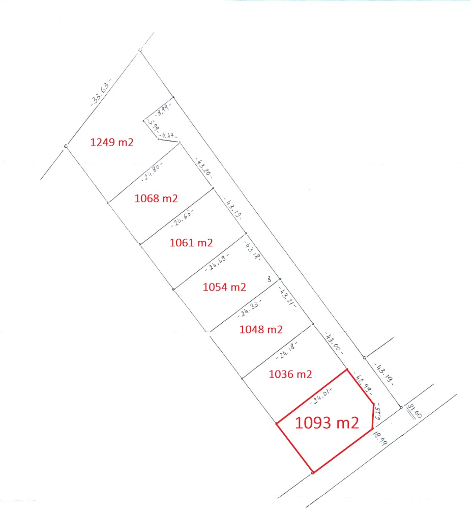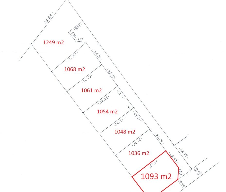 Powierzchnia działki 1093 m2 + 1/7 udziału w drodze wewnętrznej.