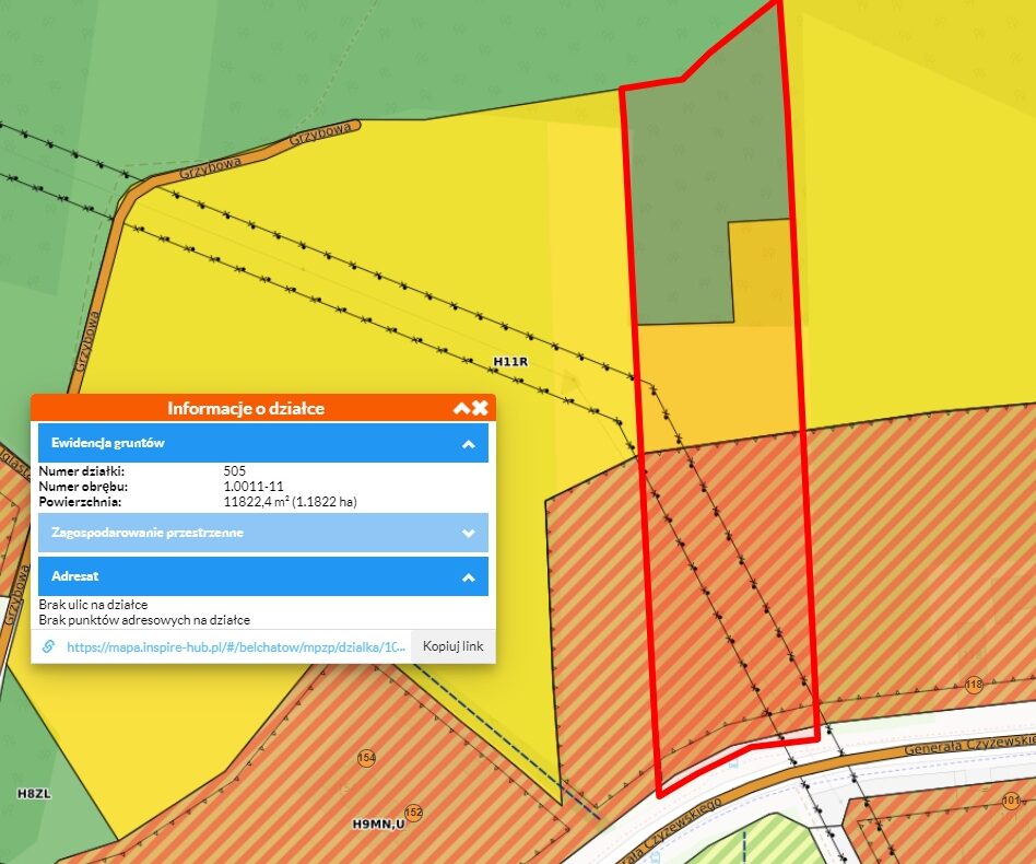 Sprzedam działkę z dużym potencjałem położoną w Bełchatowie przy ulicy Czyżewskiego, nr ewid. 505/11, zgodnie z MPZP ma charakter budowlano-rolno-leśny. Jej całkowita powierzchnia wynosi 11800 m2, z czego 5000 m2 – pow. budowlana, 2500 m2 – pow. rolna, 3500 m2 – pow. leśna.