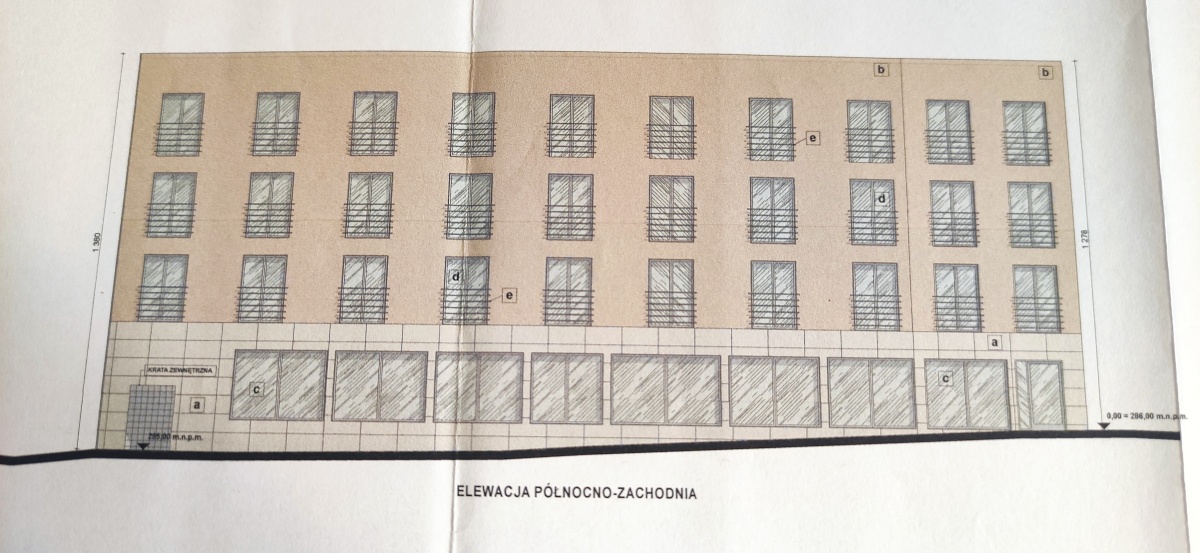 Liczba kondygnacji – 3 (parter – część usługowa i mieszkalna, I, II, III piętro – część mieszkalna)