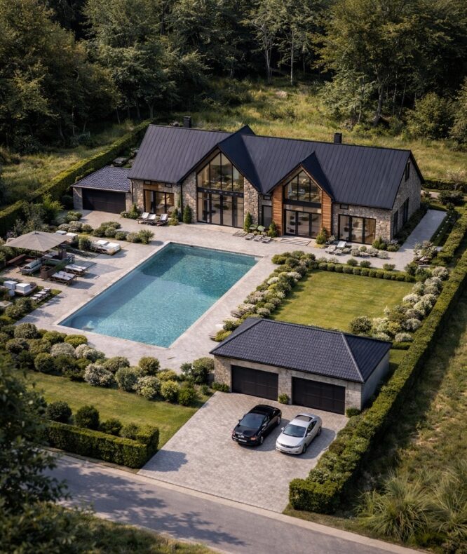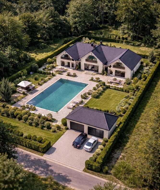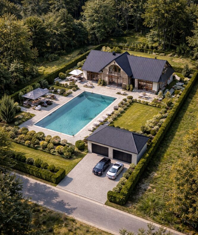 rezydencji z ogrodem i basenem