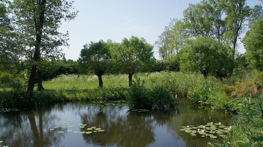Na działce znajduje się niewielki staw połączony z jeziorem.