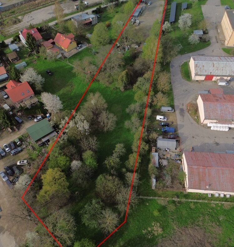 Działka jest częściowo utwardzona w stopniu umożliwiającym swobodne np. rozładunki tirów czy składowanie towarów. Na działce jest mały budynek który obecnie służy jako biuro do prowadzenia działalności. Nieruchomość posiada decyzję o warunkach zabudowy na duży obiekt handlowo-magazynowy.