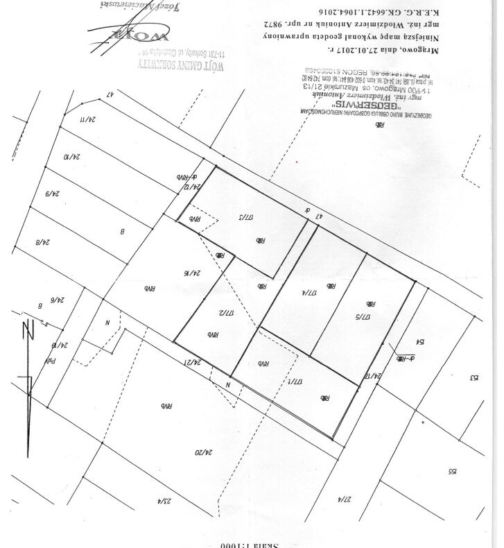 Trzy działki budowlane, które mogą być przedmiotem sprzedaży pojedynczo, z przeznaczeniem na budowę budynków mieszkalnych (całorocznych lub letniskowych) lub w całości albo po dwie, trzy, pod budowę pensjonatu. Na załączonej mapie działki wg nowego podziału przeprowadzonego w roku 2017 oznaczone zostały literami A, B, C, D i E. Działki B i C zostały sprzedane.