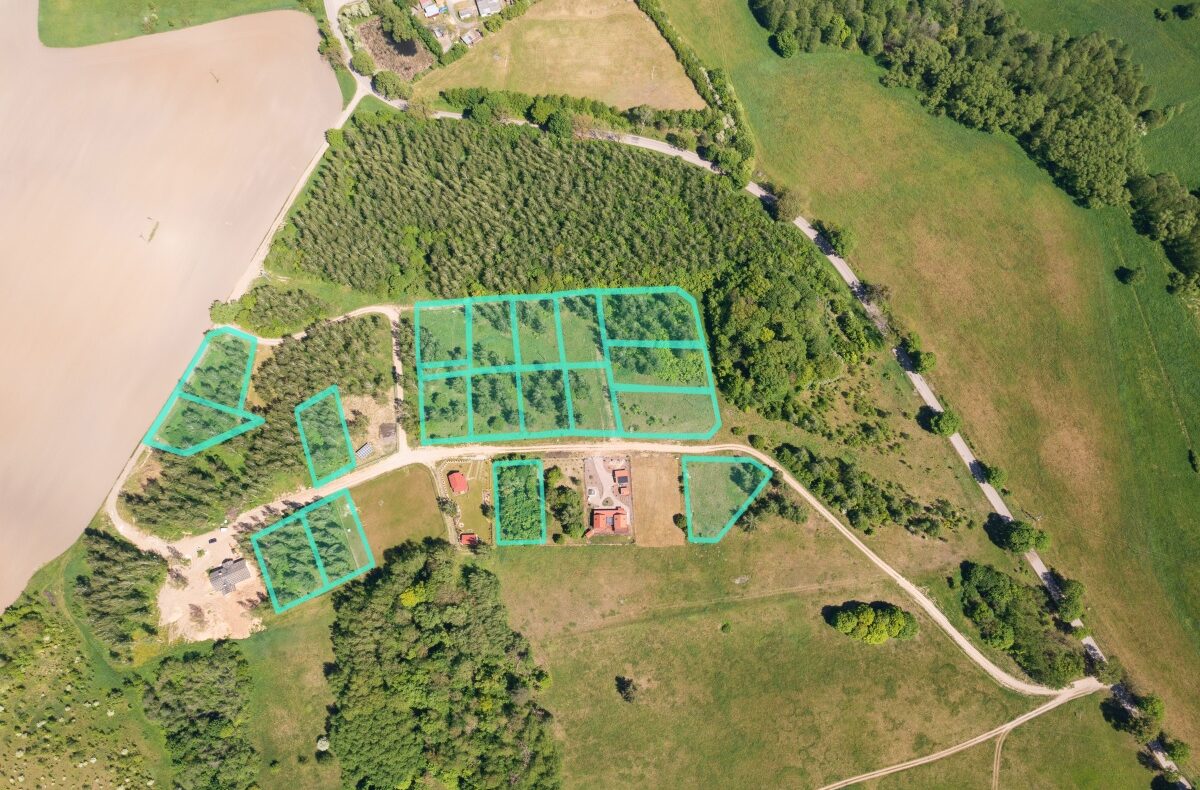 Działki są częściowo zalesione. Na każdej znajduje się od 5 do 15 drzew, głównie brzóz. Są to 20-30 letnie samosiejki, a więc już dorodne drzewa. W razie potrzeby mogą zostać usunięte, ale gorąco namawiam do ich przynajmniej częściowego pozostawienia. Drzewa stwarzają niepowtarzalny klimat. Domek w otoczeniu drzew to kwintesencja relaksu.