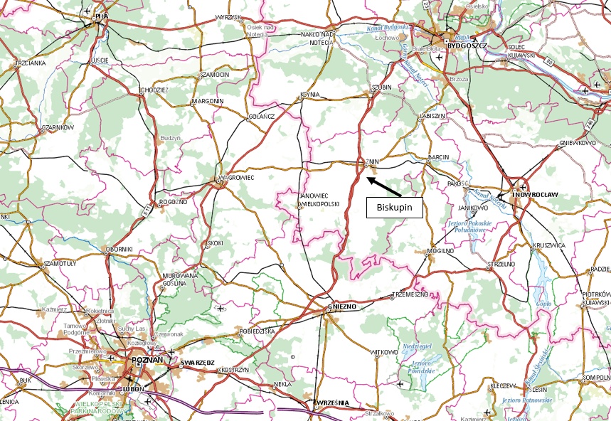 – Bydgoszczy 50 km, 35 minut jazdy samochodem – droga szybkiego ruchu S5,