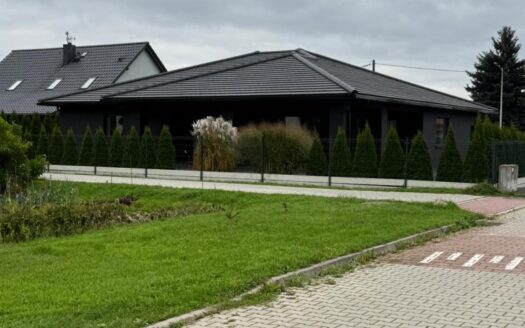 Ta realizacja to dom klasy premium – wykończony naturalnymi materiałami, dopracowany i położony w kameralnej części Radomierzyc, tuż przy granicy wrocławskiego Ołtaszyna.