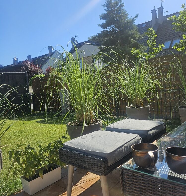 Ogród z wydzieloną strefą wypoczynkową stanowi naturalne przedłużenie salonu. To miejsce, w którym dzień można zakończyć w ciszy i zieleni, z dala od miejskiego zgiełku.